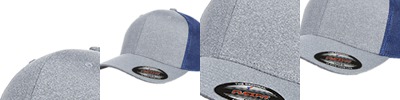 92% Polyester, 8% PU Spandex; Eight-row stitching on bill; Hard buckram backed front panels; Polyester/spandex mesh on side and back; The original Flexfit® sweatband retains shape; Black underbill ; Ermacurv® visor;