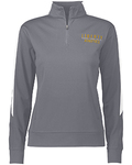 Heavyweight 100% polyester matte brushed tricot; Ladies fit; Heat sealed label; Quarter-zip pullover style; Contrast color inserts; Set-in sleeve; Front pouch pocket; Self-fabric cuffs and bottom band;