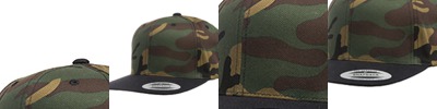 60% cotton, 40% polyester; 5-panel, unstructured, high-profile; Four-row stitching on bill; 3¾" crown; Four sewn eyelets; Matching plastic adjustable closure; Matching undervisor; Flat bill;