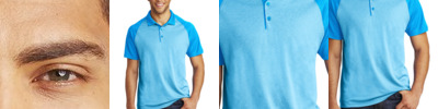 100% polyester inserts; 100% polyester textured stripe; 100% polyester Dry-Excel™; horizontal, textured stripe with high mechanical stretch; snag resistant technology; raglan sleeves for maximum mobility; self-fabric collar; three button placket;