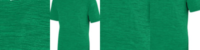 100% polyester heathered wicking knit ; Wicks moisture away from the body ; Pad print label ; Self-fabric crewneck collar; Set-in sleeves ; Double-needle hemmed bottom and sleeves.;