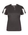 100% polyester wicking knit with true hue technology; True hue technology prevents dye migration; Wicks moisture; Ladies' fit; Tagless label; Quarter-zip pullover style;