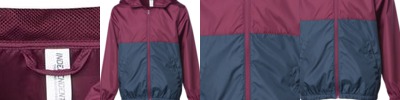 Lightweight, soft shell outer fabric in 96% polyester, 4% spandex bonded to brushed jersey; 96% polyester, 4% spandex bonded to brushed jersey; Dry-Excel™ Maze Mesh inserts at shoulders; Sleeves, hood and panels have the Tech Print pattern detail; Adjustable hood; Adjustable drop tail hem with hidden drawcord; Dual front and chest zippered pockets; Dual inside pockets;