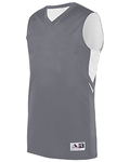 Two layers of 100% polyester wicking knit ; Wicks moisture away from the body ; Fully reversible ; Self-fabric mitered V-neck collar ; Contrast color side inserts ; Each layer hemmed separately for embellishment ; Outside locker label ; Contrast jersey hood lining, neck tape and drawcord for contemporary styling details (all body colors include charcoal grey contrast detailing except charcoal heather, which has black); Two-needle coverstitching on armholes, shoulders and waistband;