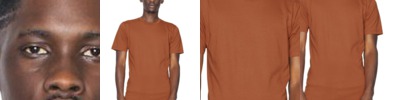 4.3 oz., 52% cotton 48% polyester, 30 singles; Ultra-fine cotton blend; Fashion fit; Side seams; Clean-finished curved bottom hem; Tear-away label; Made in a w.r.a.p. certified factory;