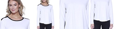 4.8 oz., 100% polyester mini-jacquard; Anti-bacterial; Moisture-wicking; Stain-resistant; UV 15-39 protection; Feminine fit; Flat-knit collar;