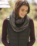 100% polyester heathered wicking knit ; Wicks moisture away from the body ; Ladies' fit ; Pad print label ; Self-fabric V-neck collar ; Set-in sleeves ; Double-needle hemmed bottom and sleeves.;
