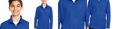 100% polyester wicking knit; Wicks moisture away from body; Color secure technology helps prevent dye migration; Set-in sleeves; Quarter-zip pullover style; Tear away label;