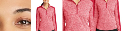 This lightweight pullover locks in color, wicks moisture, resists snags and has an amped up colorblock look. 4.1-ounce, 100% polyester yarn-dyed jersey with PosiCharge technology (Electric Heather) 4.7-ounce, 100% polyester jersey with PosiCharge technology (solid) Removable tag for comfort and relabeling Cadet collar Reverse coil zipper Colorblock on shoulders and sleeves Princess seams Set-in sleeves Open cuffs and hem Drop tail hem