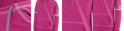 - Contrast hood, drawcord, sport shoulder and sleeves