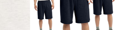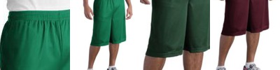 100% polyester • 3-oz. • 70-denier mesh with solid tricot liner,11" inseam • athletic cut • covered elastic waistband and draw-cord • Sizes: S-5XL