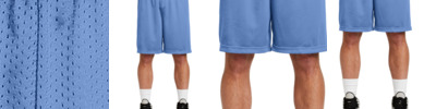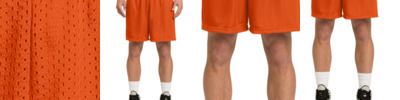 100% polyester • 3-oz. • 70-denier mesh with solid tricot liner • 5" inseam • athletic cut • covered elastic waistband and draw-cord • Sizes: XS-2XL