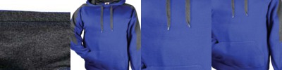 - 7.5 oz., 80/20 cotton/polyester French terry (Burgundy, Navy and Olive are 70/30 cotton/polyester)