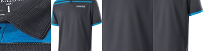 5 oz/yd2 / 170 gsm, 54% recycled polyester, 46% polyester piqué; Moisture-wicking performance ; UV 40+ protection performance ; self-fabric collar with collar stand; self-fabric flat piping along front yoke seams; decorative inner neck tape; stylized placket trimmed with flat self-fabric piping ;