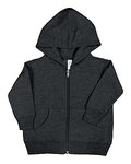 - Solid fleece body with charcoal fleck hood, drawcord and sleeves