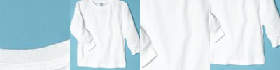 - Double-needle hem sleeves and bottom