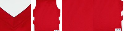 4.8 ounce 50% polyester/50% cotton jersey knit * Contrast color V-neck collar * Set-in sleeves with contrast color sleeve stripes