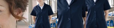 3.4 oz., 55% cotton, 45% polyester; Fine yarn count shirting; True Non-iron performance straight from the dryer; stain release finish; Active Fit; Patented pucker-free taped seams; Fused collar, cuffs, and placket; Split back seam with bias cut back yoke; straight collar; pearlized buttons; front and back princess seams for a flattering feminine fit; bust darts for a flattering feminine fit;