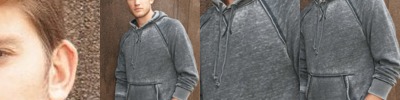 - Raw-edge seams around hood opening, shoulders, pocket seams, cuffs, waistband and side seams